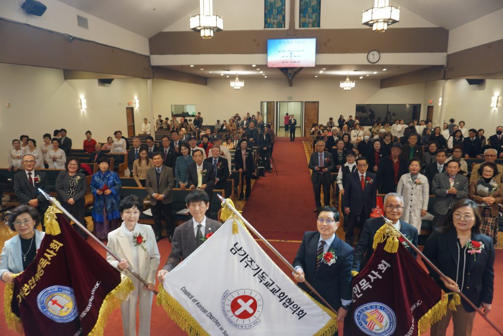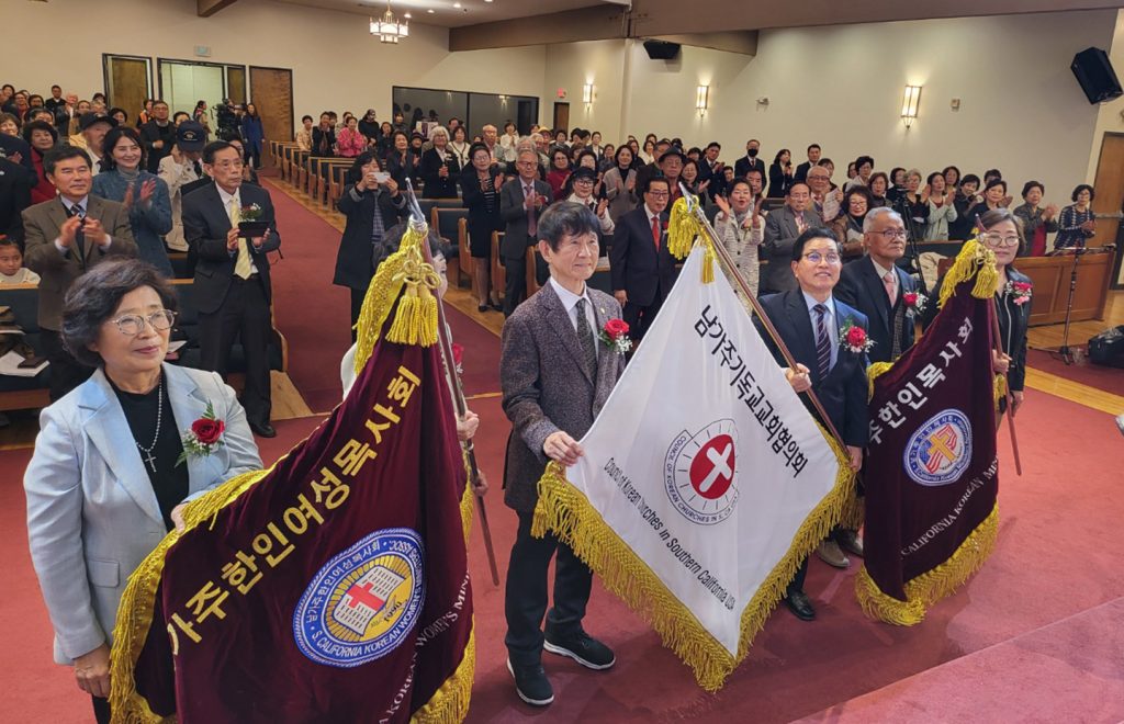 ‘그리스도의 비전을 함께 나누는 공동체’인 남가주기독교교회협의회 제55대 회장단, 남가주한인목사회 제58대 회장단, 남가주한인여성목사회 제15대 회장단 이·취임식이 지난 19일(주일) 오후 4시 미주평안교회(담임 임승진 목사) 본당에서 300여 명이 모인 가운데 성대하게 열렸다.